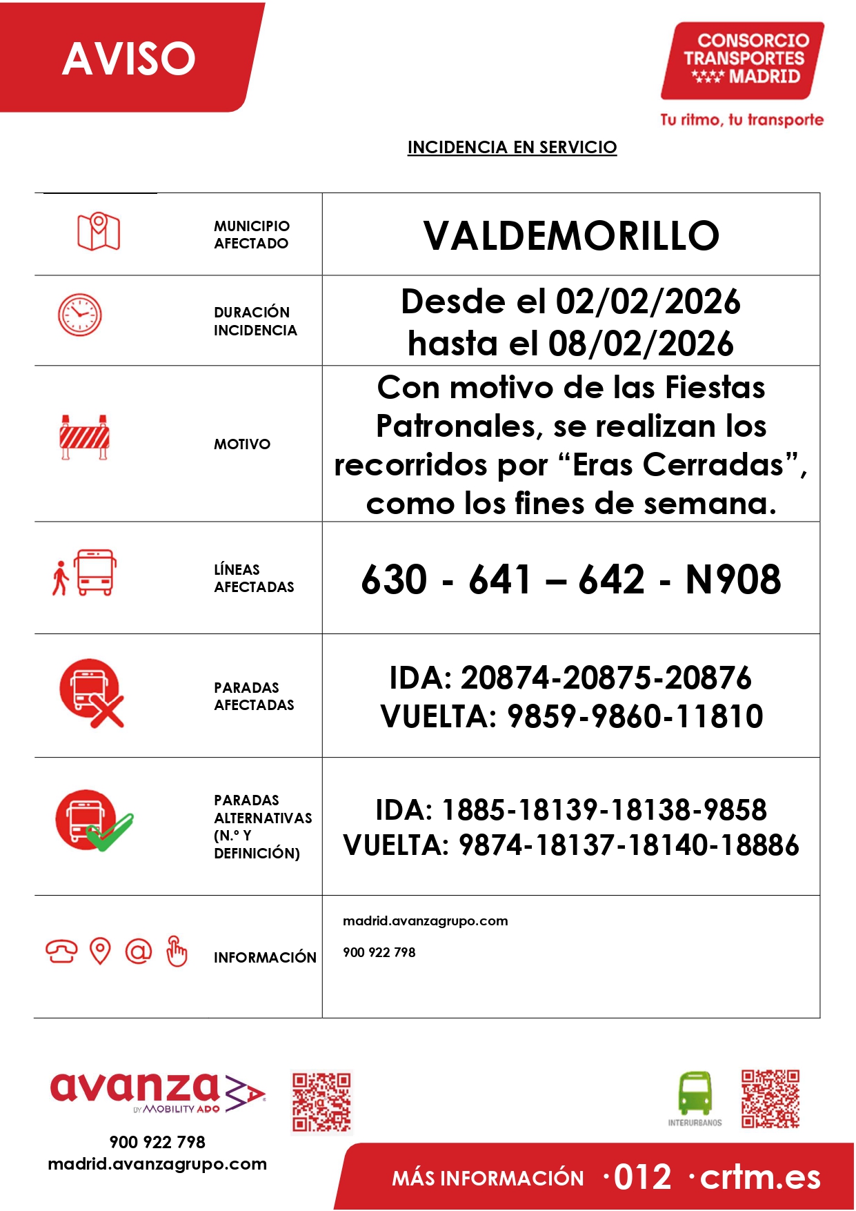 CAMBIO ITINERARIO POR FIESTAS PATRONALES SAN BLAS LINEAS 630, 641, 642 Y N908