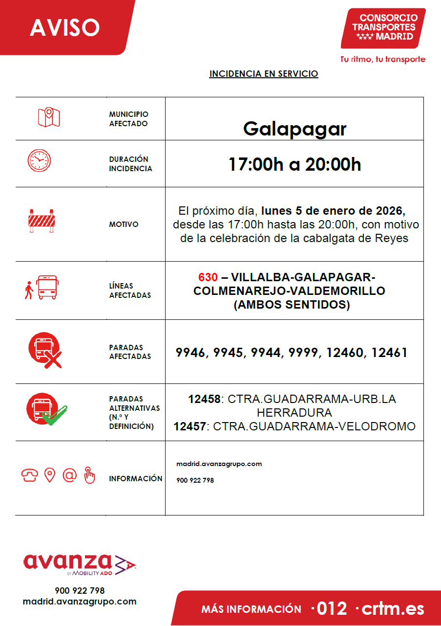 MODIFICACION ITINERARIO CABALGATA REYES MAGOS L-631, 633 Y 634