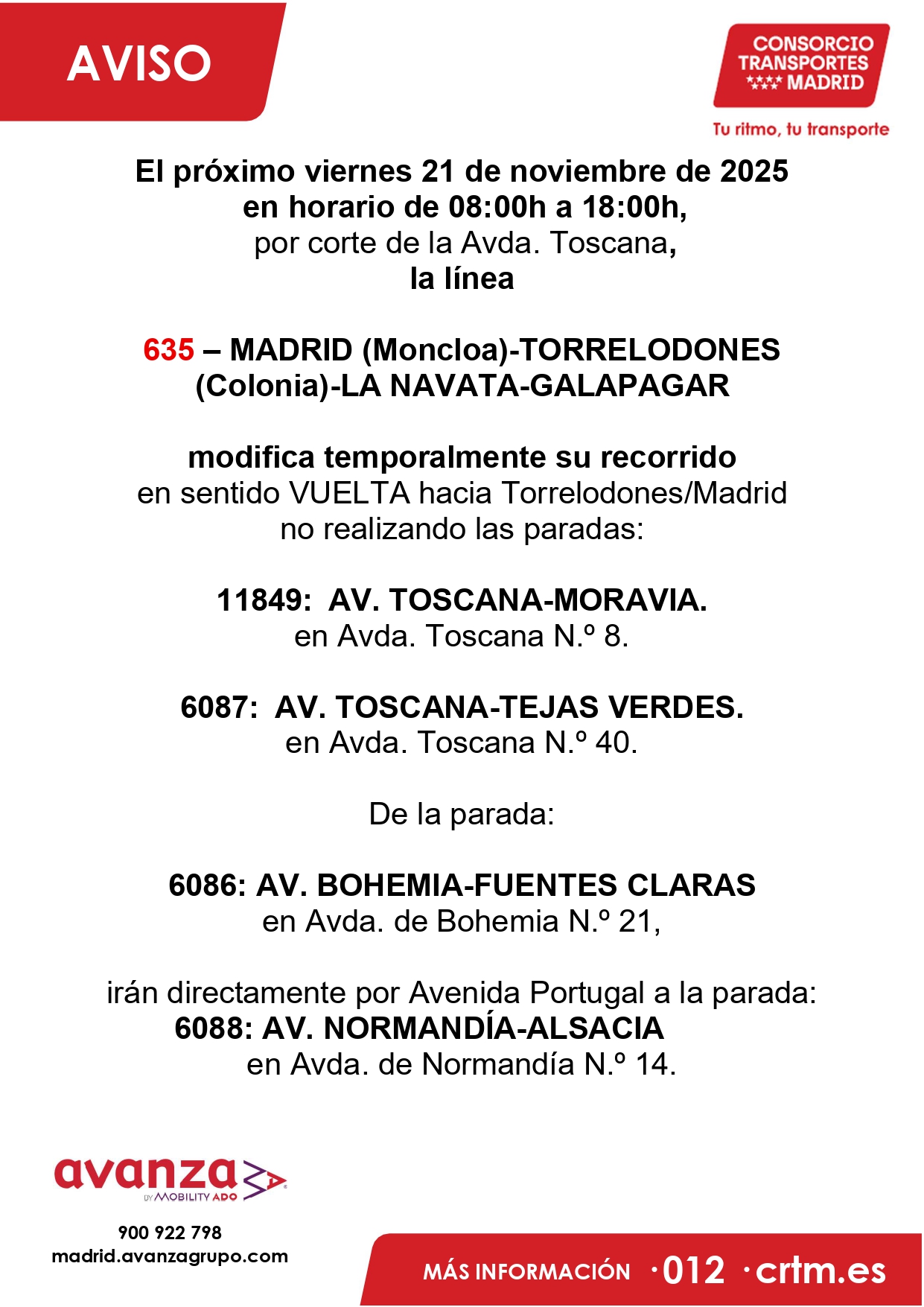 L635 * VIERNES 21 - RECORRIDOS ALTERNATIVOS.