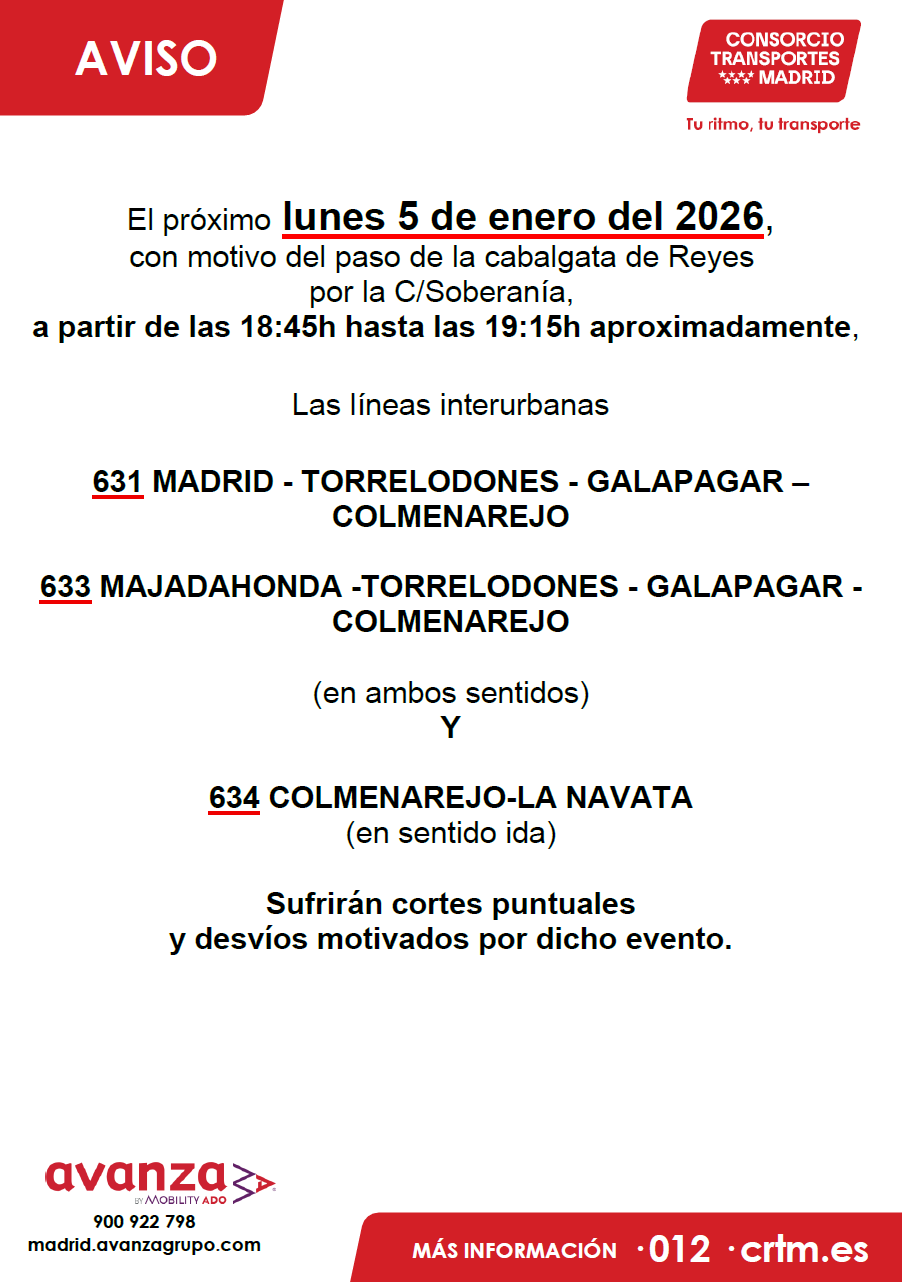 MODIFICACION ITINERARIO CABALGATA REYES MAGOS L-631, 633 Y 634
