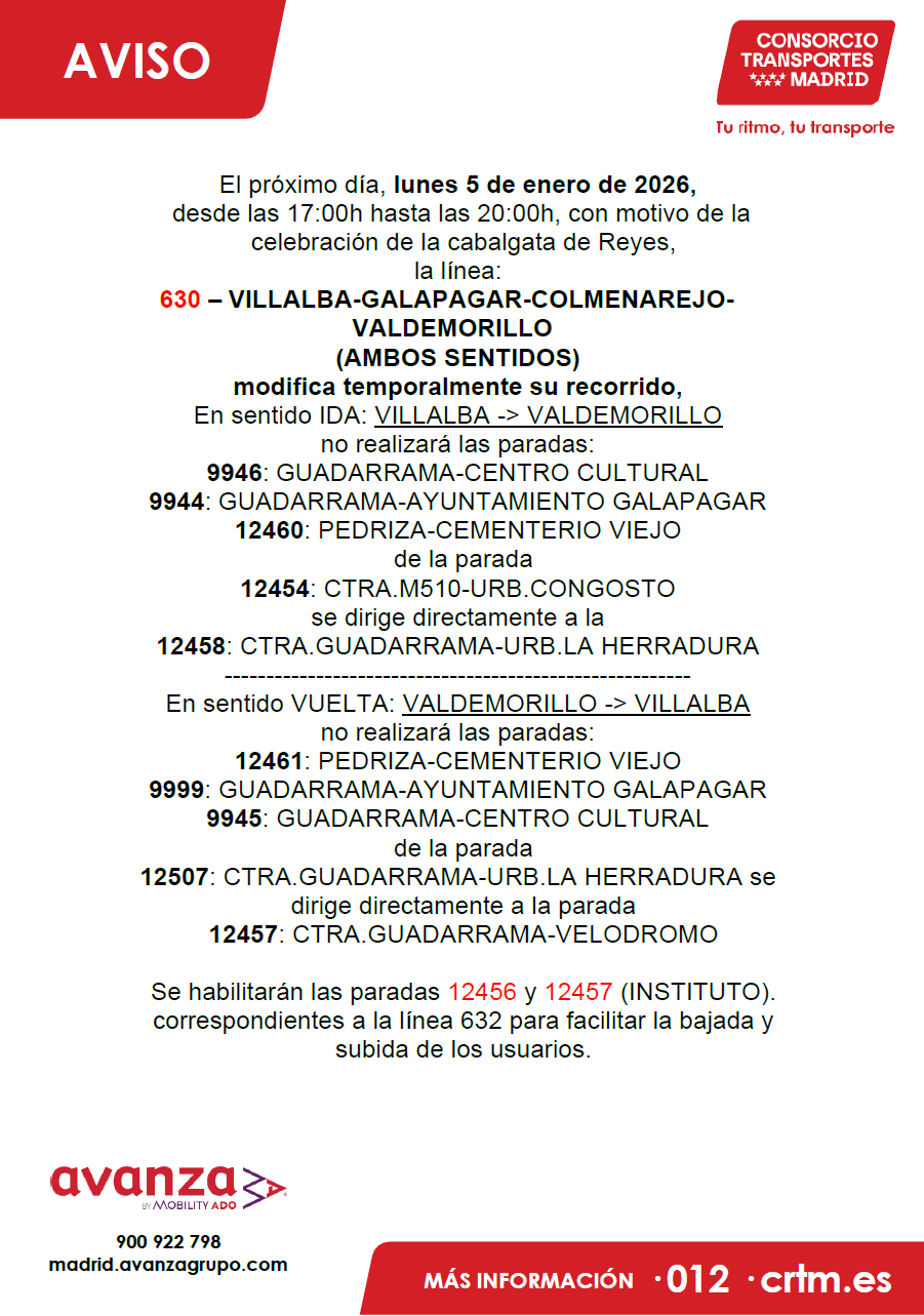 MODIFICACION ITINERARIO CABALGATA REYES MAGOS L-631, 633 Y 634