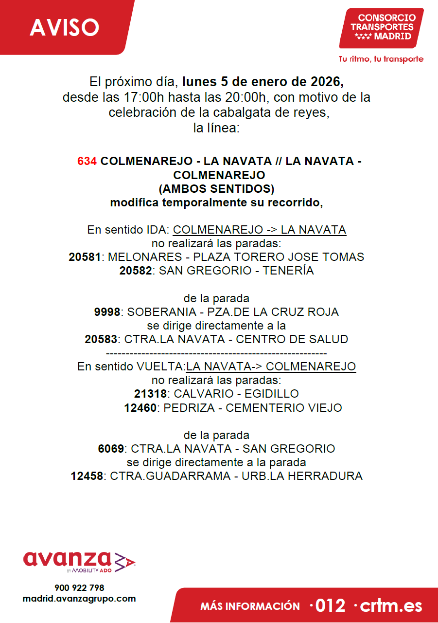 MODIFICACION ITINERARIO CABALGATA REYES MAGOS L-631, 633 Y 634