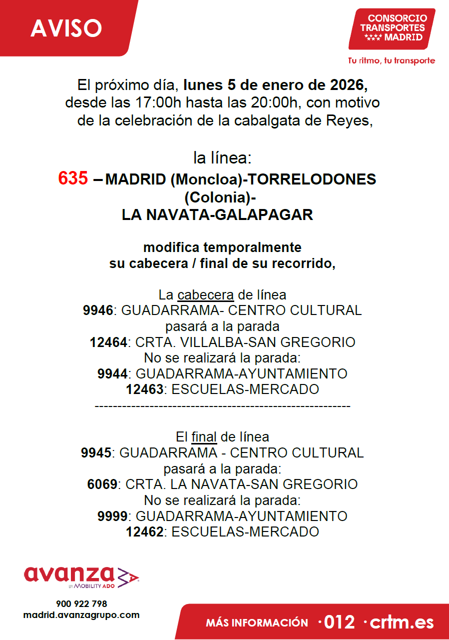 MODIFICACION ITINERARIO CABALGATA REYES MAGOS L-631, 633 Y 634