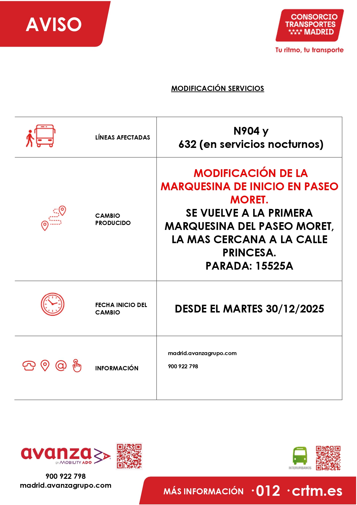 N904 - 632 (Servicios nocturnos) - CAMBIO EN PARADA 15525