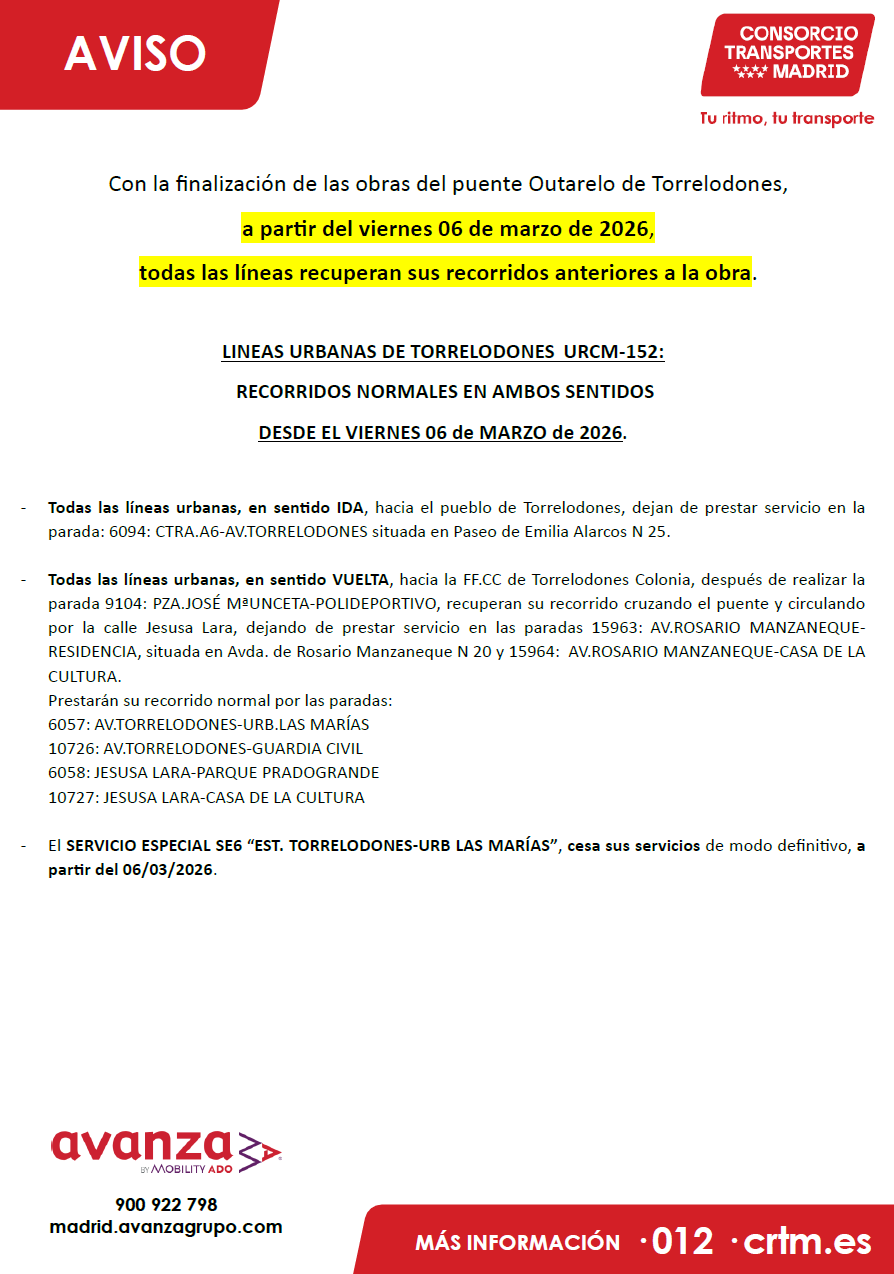CESE DEFINITIVO LINEA SE-6 DE TORRELODONES