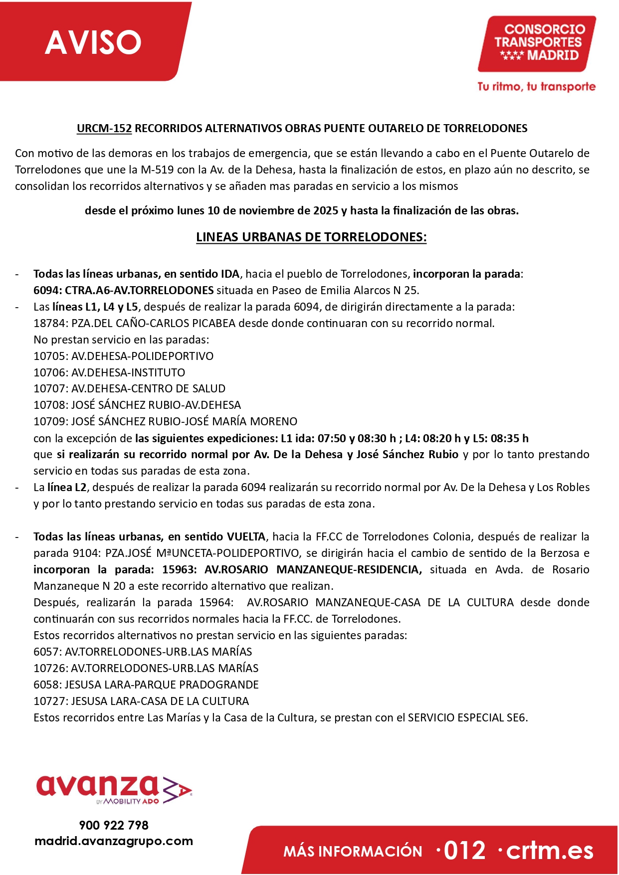URCM-152 RECORRIDOS ALTERNATIVOS OBRAS PUENTE TORRELODONES